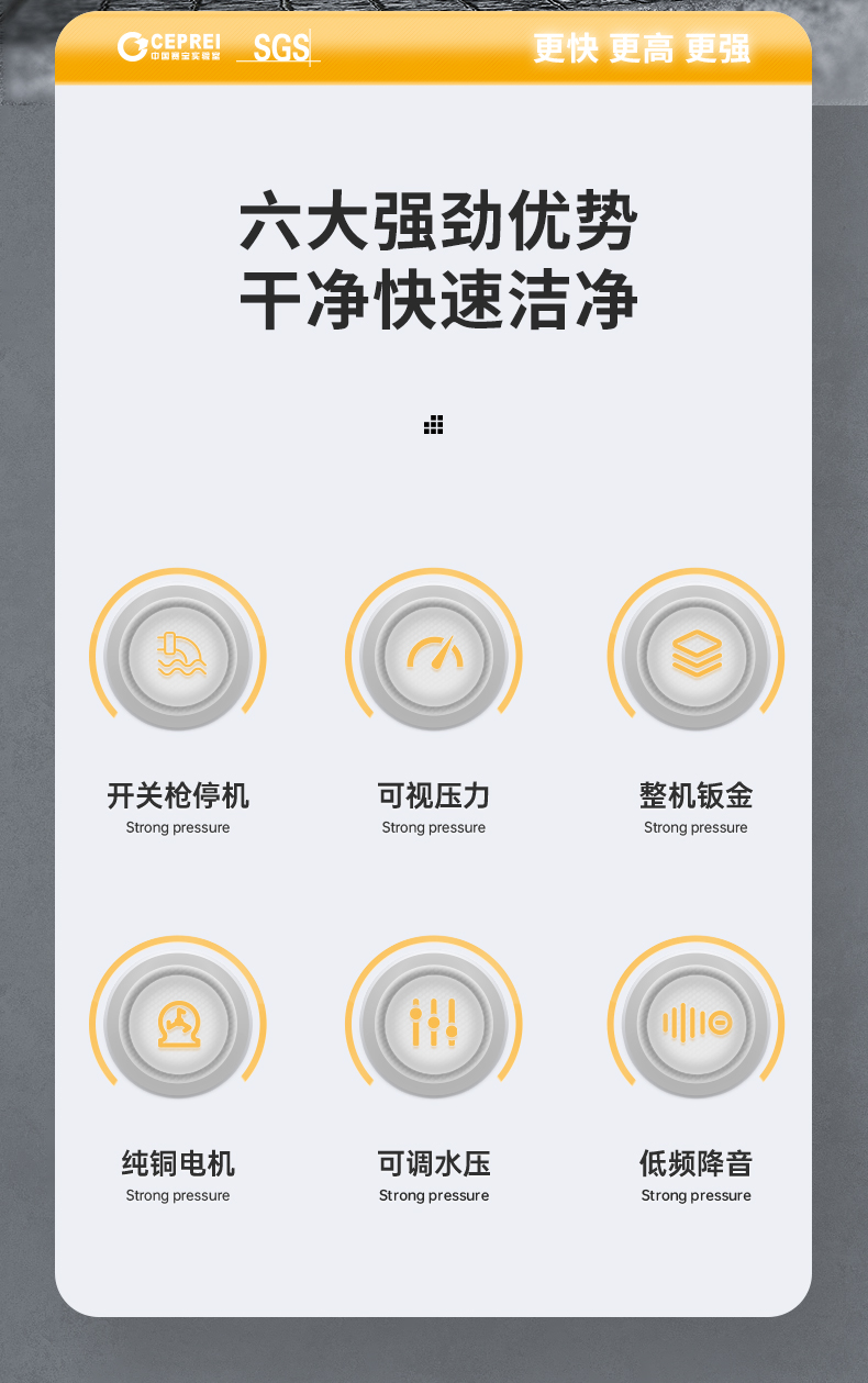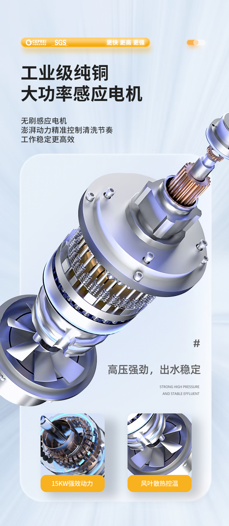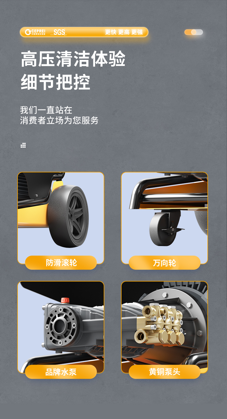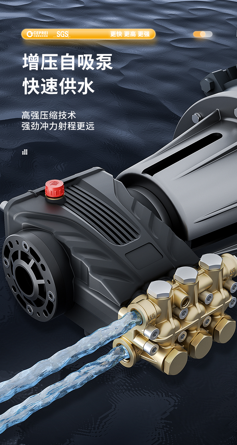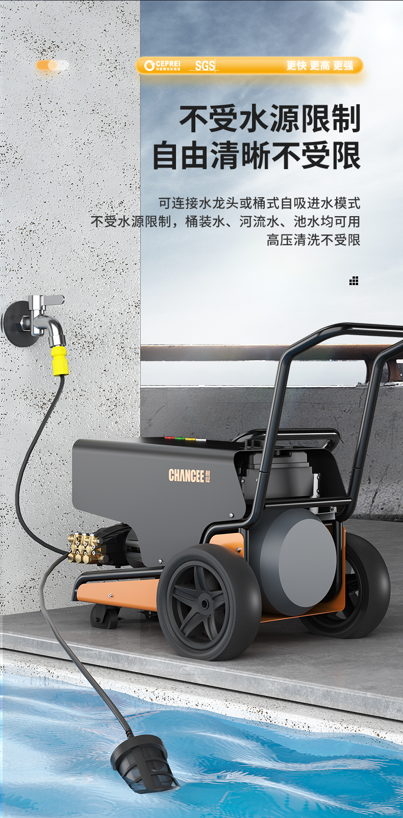 橙犀高壓清洗機 YG3515:強勁動力24小時可聯系工作,高壓不停機,還擁有溜達強勁優勢,干凈快速清潔,工業級純銅,增壓自吸泵快速供水。