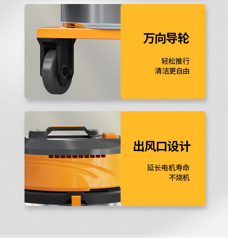橙犀工業吸塵器:吸水吸塵多功能,3擋隨意切換,灰塵廢料一機搞定,多場景使用,無線無拘無束。大功率吸塵清潔更高效。