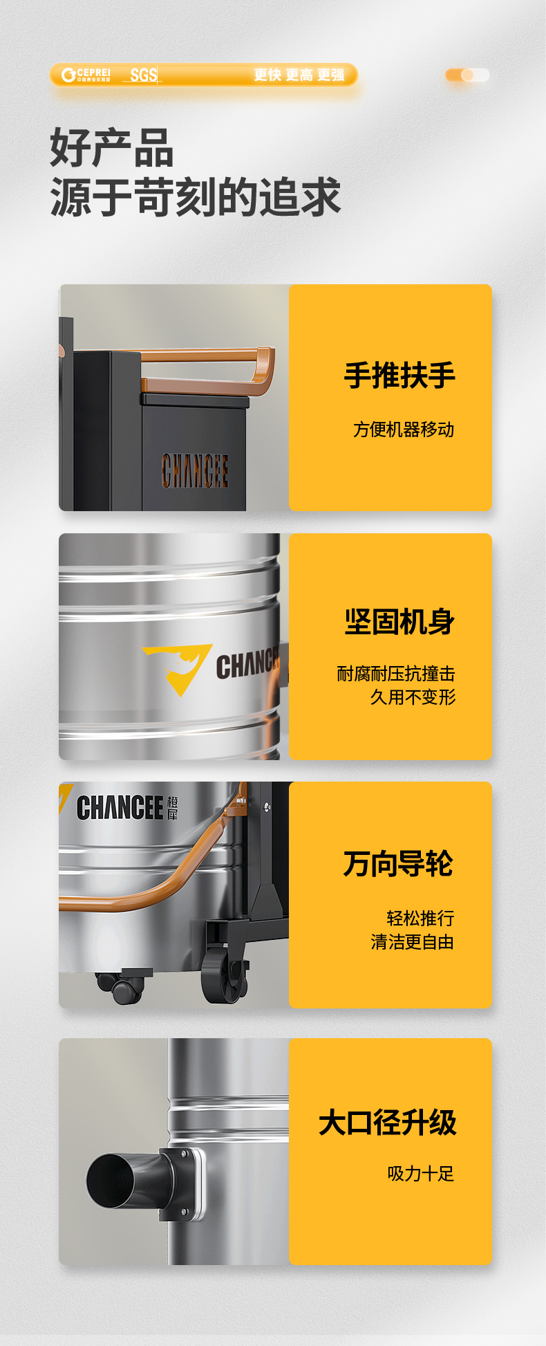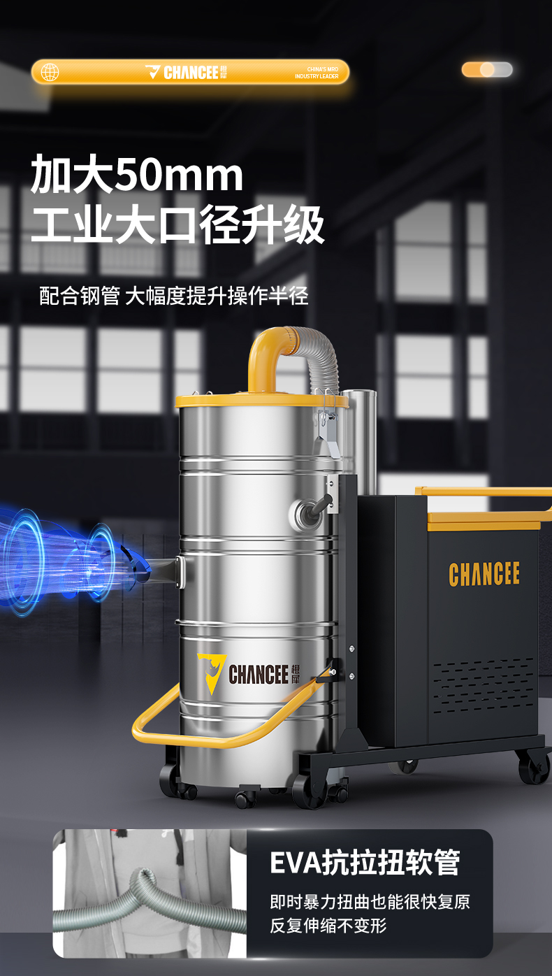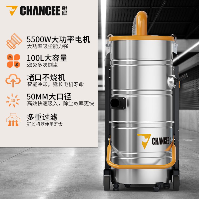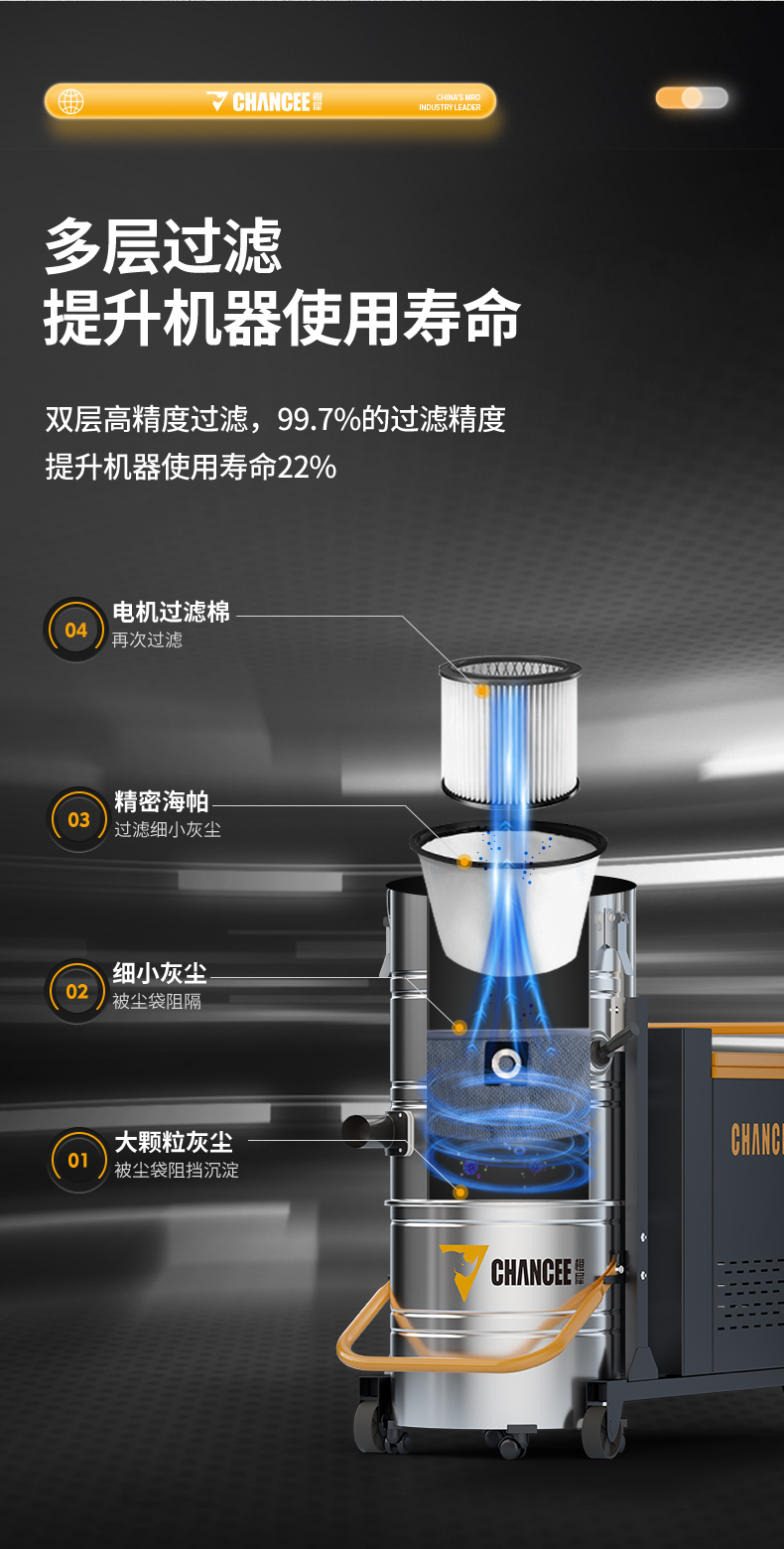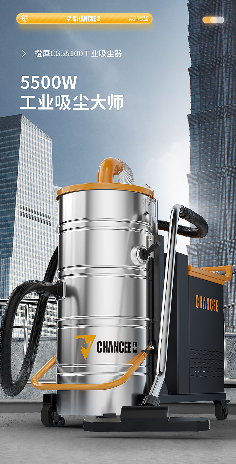 橙犀吸塵器CG-55100:三電機移動式干濕兩用大師,配合鋼管可大幅度提升操作半徑,多重高精度過濾,提升機器使用壽命22%